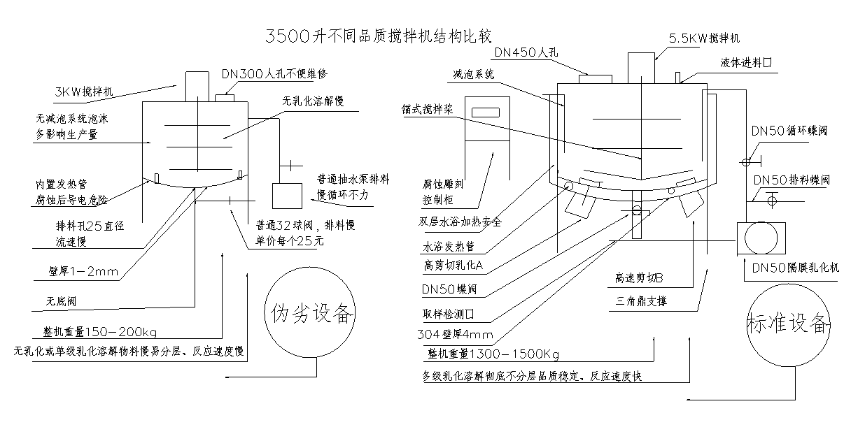 一張簡圖告訴您不同品質攪拌機結構比較