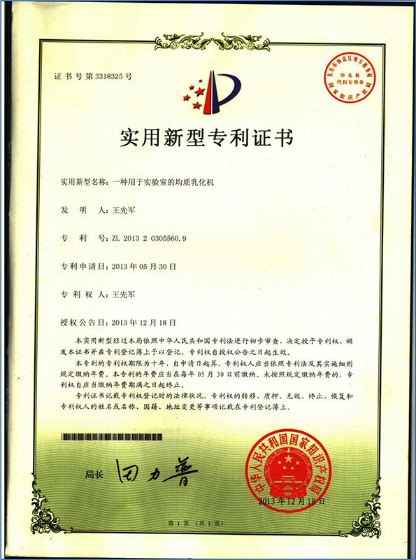 2013年05月曾獲得均質(zhì)乳化機(jī)國家專利 |